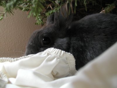 Greg in his favourite hiding spot under the skirting of the Christmas tree