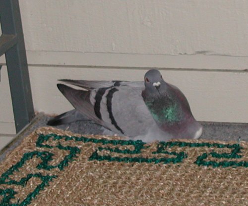 This pigeon was nesting out on the hallway for a while.
